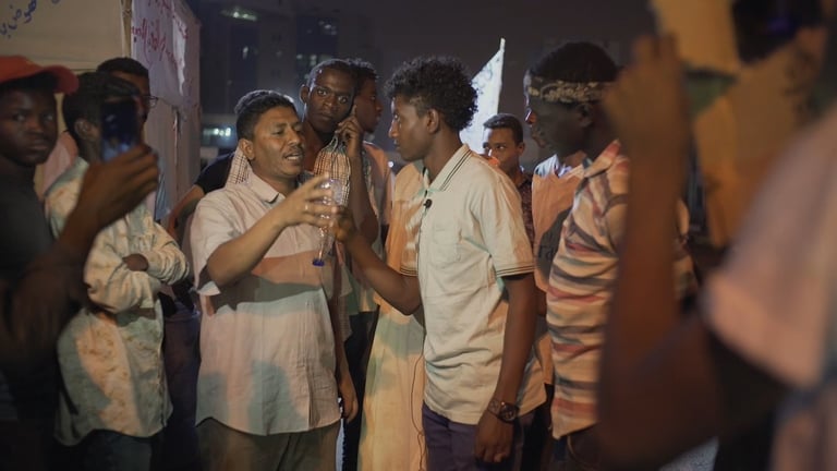 In April 2019, a nonviolent youth-led movement in Sudan toppled the genocidal military regime that had been in power for three decades. After the fall, Sudanese from across the country made their way to Khartoum to demand a peaceful transition to civilian rule. There, they formed a sit-in protest, where art became the means to conjure a new Sudan. Having known nothing other than state-sponsored propaganda on TV, a group of young revolutionaries perform an alternate reality as a roaming television news crew.